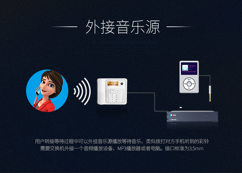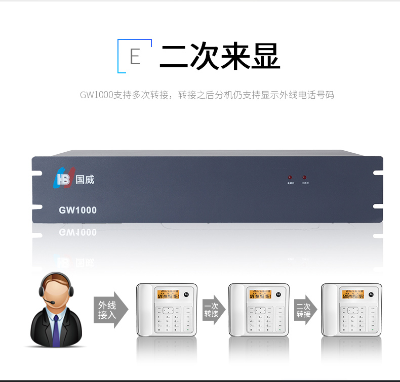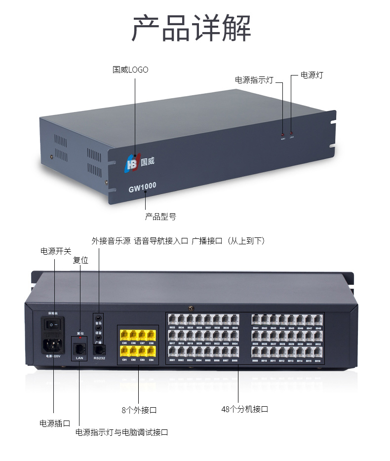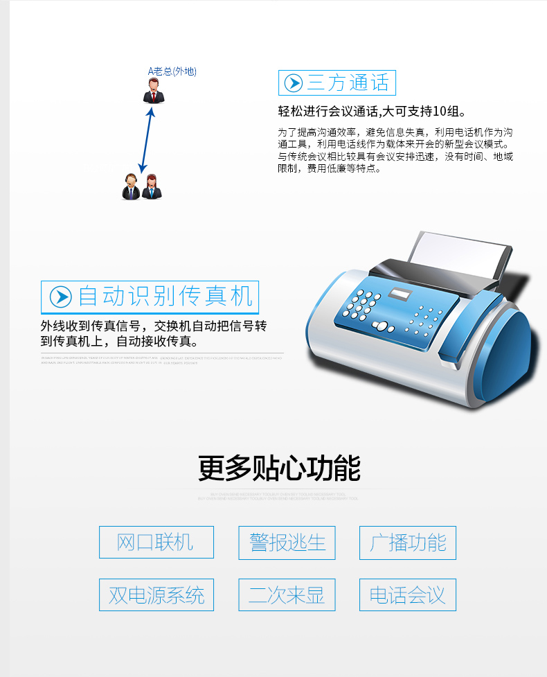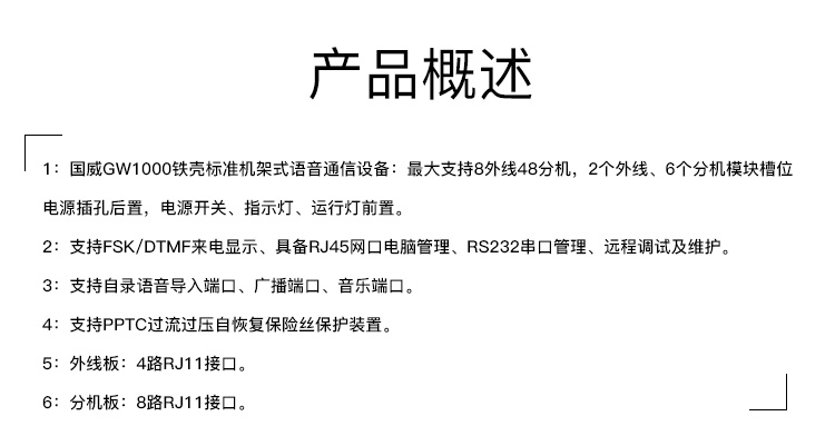 ▲2:支持FSK/DTMF来电显示、具备RJ45网口电脑管理端口(选配)、RS232串口电脑管理接口、远程安装、调试及维护。