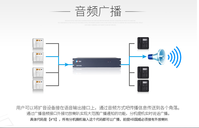 用户可以将扩音设备接在语音输出接口上,通过音频方式把传播信息传送到各个需求点。